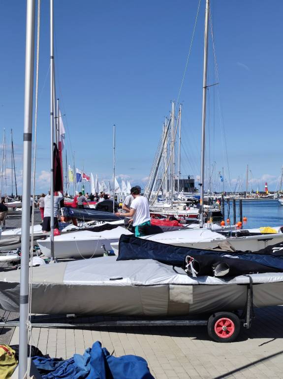 Ian Pinell, Holger Jess, Wolfgang Hunger, Jørgen BOJSEN-MØLLER und Jacob BOJSEN-MØLLER, Lutz Stengel und Frank Feller uvm. Die Crème de la Crème der internationalen 505er Segler genau vor der Haustür! Der „Eurocup 2022“ ist zur Warnemünder Woche 2022 angekommen und lockt viele 505er Segler aus Frankreich, Belgien, Dänemark, Schweden, Polen, UK und Australien zu uns. Dass man sich so ein hochkarätiges Segel Event nicht entgehen lassen war für mich und Olaf klar.